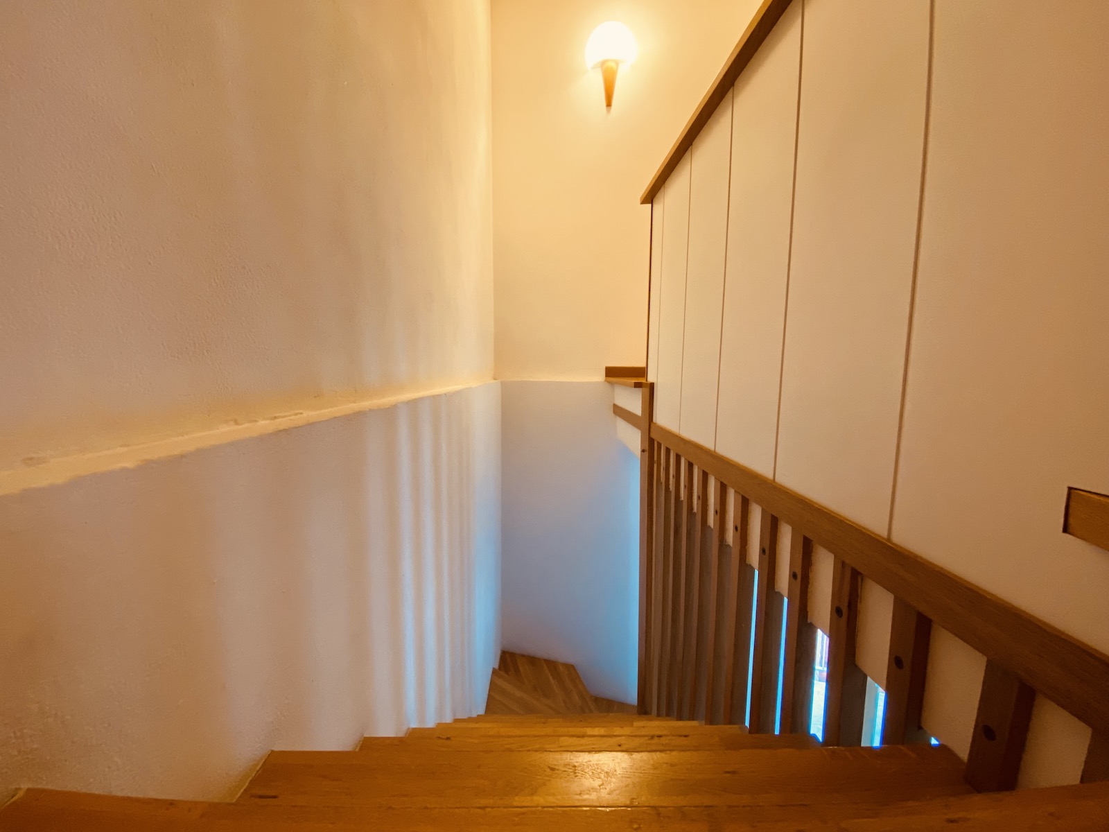 Al piano superiore, sotto il caldo e caratteristico tetto a vista, si trovano due camere accoglienti e un bagno elegante, per vivere un’esperienza autentica e suggestiva.