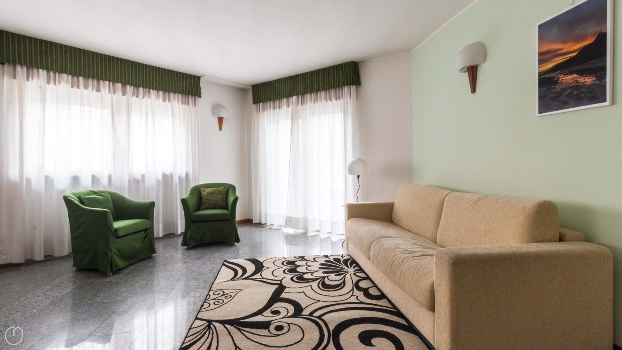 Il Bilocale Comfort offre spazi ampi e ben distribuiti, ideali per famiglie o gruppi di amici. Dispone di un soggiorno con divano letto matrimoniale, una cucina attrezzata, una pratica cabina armadio e un bagno privato.
