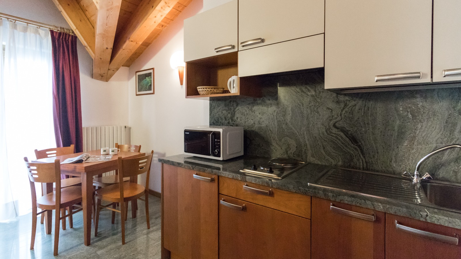 Il punto forte è la meravigliosa terrazza privata con vista sulle montagne, perfetta per colazioni all’aperto o momenti di relax.
