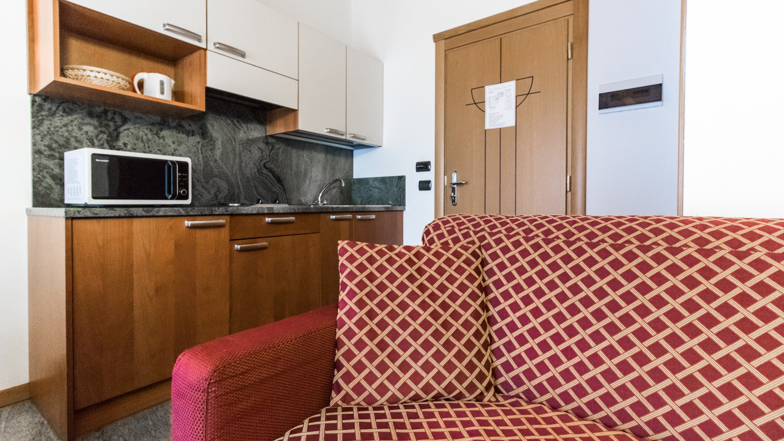 Il Bilocale Deluxe unisce comfort e charme in spazi ben organizzati. Dispone di un soggiorno con divano letto matrimoniale, una cucina attrezzata, una camera con letto matrimoniale e un bagno privato.